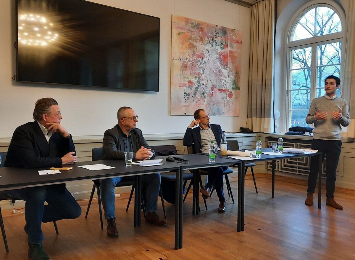 Podiumsdiskussion zur Bundestagswahl des Seniorenbeirates im Rahmen vom Demokratie Café. Digitalisierung, ÖPNV, Fake-News in sozialen Medien, Migration, Fachkräftemangel, Barrierefreiheit und und ...., das Themenspektrum war vielfältig, sodass die Teilnehmer (von links) Konstantin von Notz (Bündnis90/die Grünen), Uwe Martens (SPD in Vertretung für Nina Scheer), Henri Schmid (CDU) und Johannes Basler (FDP) gut die jeweiligen eigenen Positionen und die ihrer Parteien herausarbeiten konnten. Die Veranstaltung vor einem sehr interessierten Publikum fand in einer wohltuend sachlichen und wertschätzenden Atmosphäre statt!