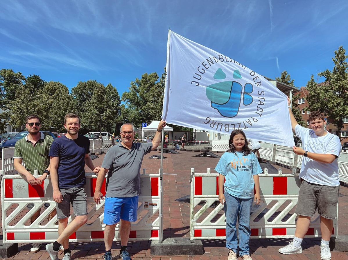 Die verschiedenen Etappen des „Laufs der Vielfalt“ wurden eingerahmt durch vielerlei Musik, Mitmachaktionen und einem bunten Bühnenprogramm auf dem ‚Platz der Kinderrechte‘. Die vielen Ehrenamtlichen aus Jugendarbeit und Verbänden stellten ihre Arbeit vor und das freiwillige Engagement wurde mit einer großen Fotoaktion gewürdigt, der wir uns spontan ebenfalls angeschlossen haben.